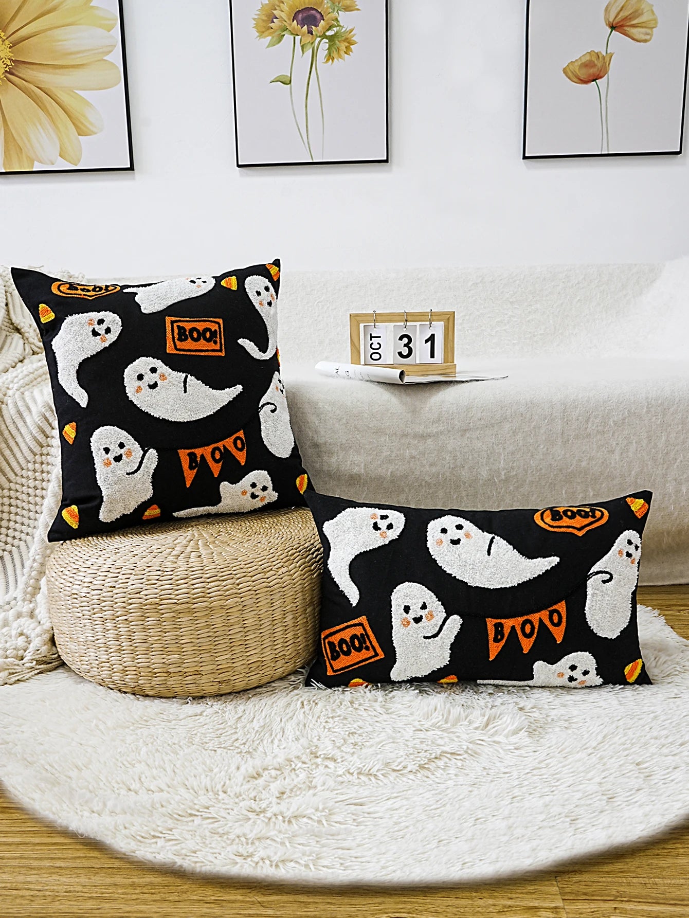 1pc Halloween Exquisite Embroidery Ghost Pattern Cushion Pillow Case, Multi-Room Universal, Does Not Include Pillow Core